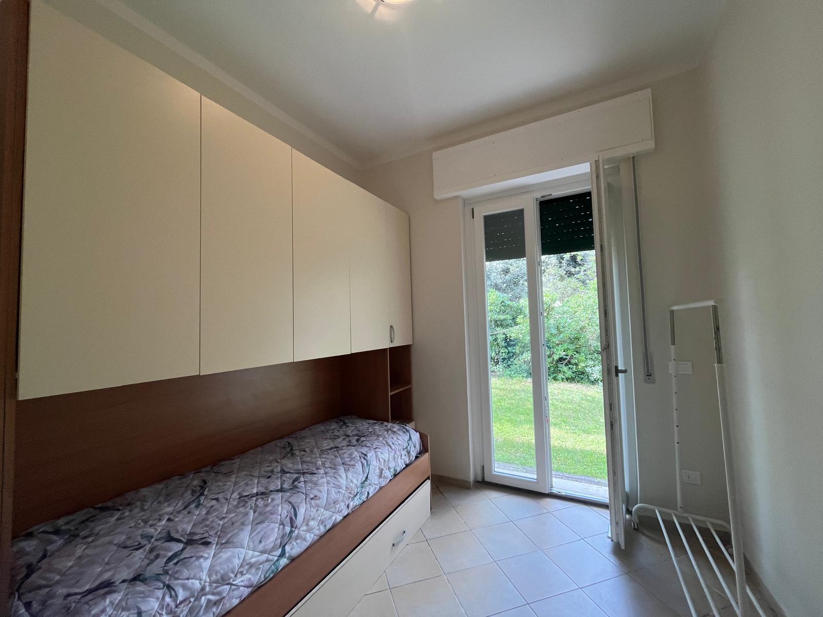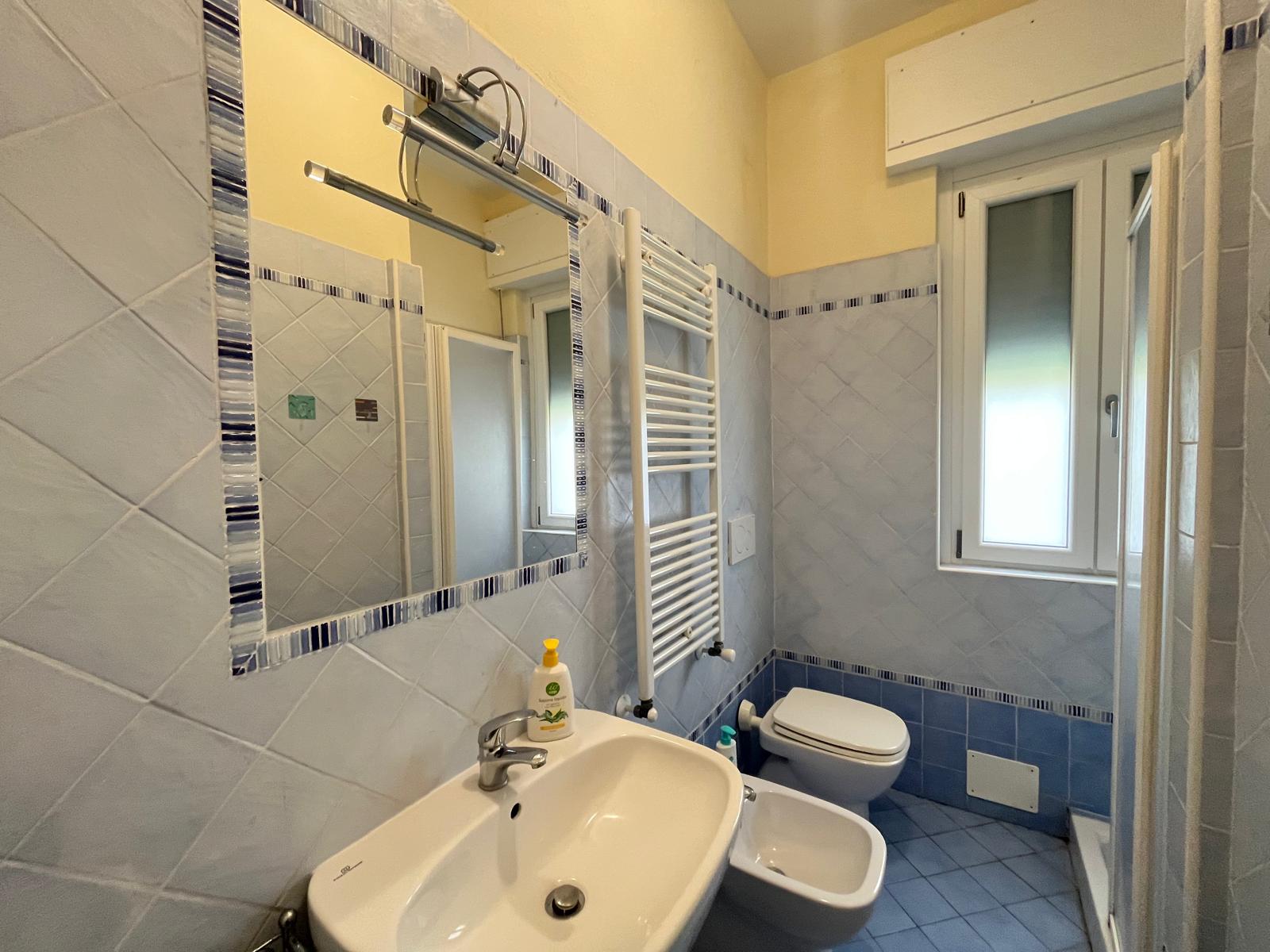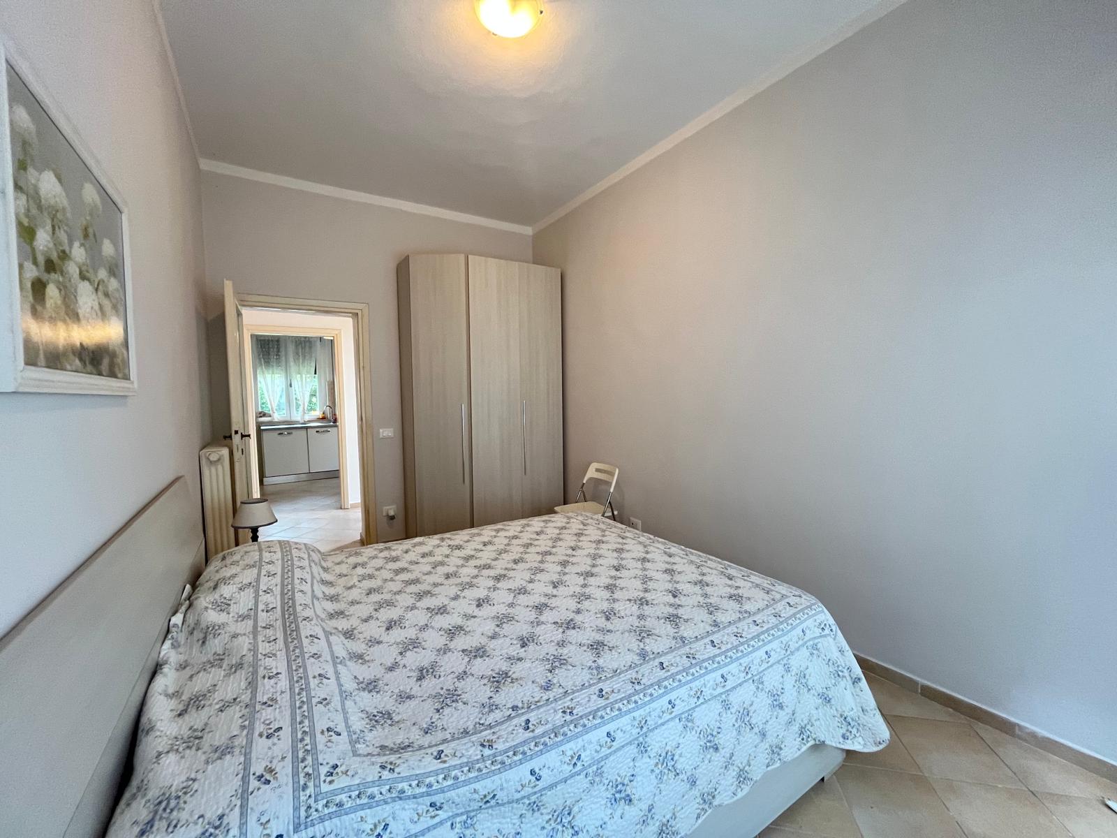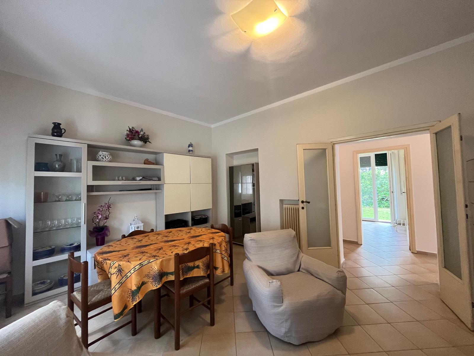 Il piano terra, speculare al piano superiore, è attualmente suddiviso in due appartamenti: un bilocale con soggiorno, angolo cottura, camera matrimoniale e bagno, e un trilocale con ingresso, cucina abitabile, ampio soggiorno, camera matrimoniale, studio e bagno.